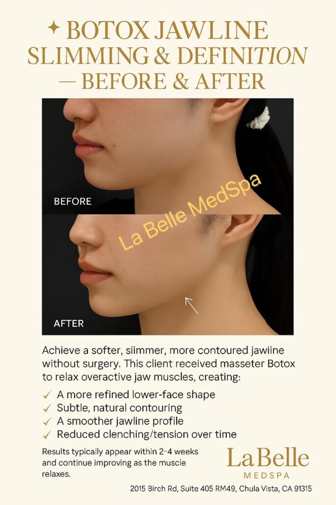It’s a specialized technique that uses precise targeting for muscle relaxation and contour reshaping. This process results in a sharper, more defined jawline and a lighter, slimmer face shape—all without drastically changing your inherent facial structure.